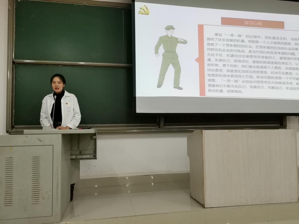 支部学习小组第三、第六小组分享学习《习近平谈治国理政》第三卷相关章节内容的心得体会。第三小组代表陆静文对《习近平谈治国理政》第三卷“增强忧患意识,防范化解风险挑战”相关内容进行学习分享。她谈到,新时代青年虽然成长在和平年代,但新时代有新的挑战,新的风险,我们需要保持高度警惕,增强自己的忧患意识,以充沛顽强的斗争精神将之化险为夷、转危为安。第六组学习代表彭美云对《习近平谈治国理政》第三卷中“推进共建‘一带一路’走深走实”相关学习内容进行分享,她表示:我们要深刻认识到,“一带一路”建设是我国在新的历史条件下实行全方位对外开放的重大举措、推进互利共赢的重要平台,共建“一带一路”不仅是经济合作,而且是完善全球发展模式和全球治理、推进经济全球化健康发展的重要途径。面对这项伟大的事业,我们青年一代要努力学习,练就过硬本领,积极投身这一伟大的实践中,与亿万人民携手并进创造更美好的生活。