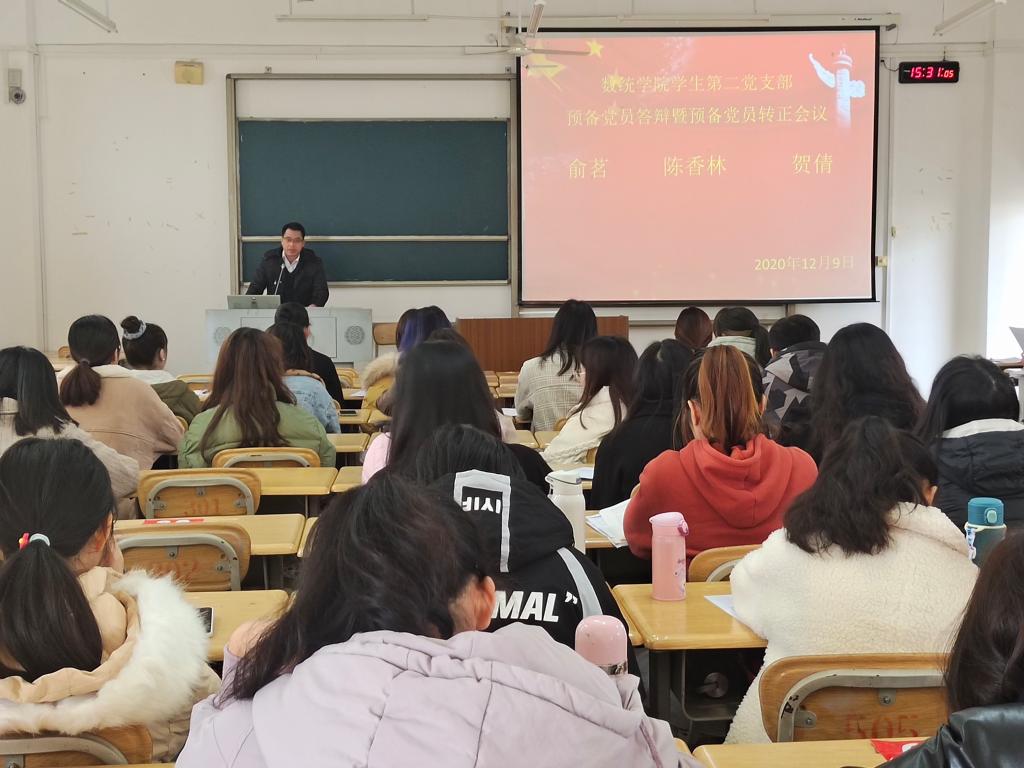 2020年12月9日下午,数学与统计公司员工第二党支部于格致楼301教室召开预备党员答辩暨转正支部大会。会议由数学与统计公司党支部书记张明进主持。员工第二党支部全体师生党员,发展对象以及入党积极分子参加会议。