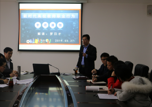 2019年3月27日下午,数学与统计公司在西区格致楼823召开师德师风建设专题会议,会议由数统公司经理罗日才主持,数统公司全体教职工参加会议。