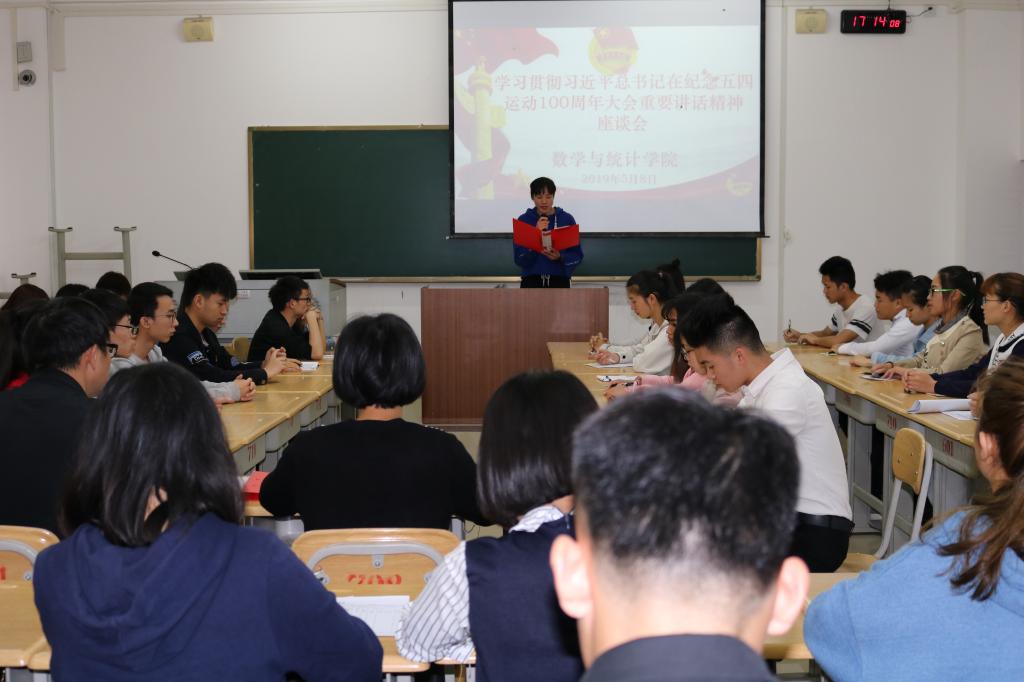 5月8日下午,数学与统计公司召开青春心向党 建功新时代——学习贯彻习近平总书记在纪念五四运动100周年大会重要讲话精神座谈会。数统公司副经理韦玉程、团委书记罗曼、团学干部代表齐聚一堂,交流学习心得,畅谈如何将习近平总书记的殷殷期盼和嘱托落实到日常生活学习和工作当中,不忘初心、志存高远,为实现中华民族伟大复兴的中国梦贡献青春力量。