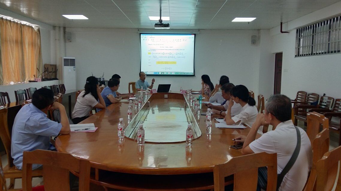 6月24日下午,北部湾大学郭发明教授应邀到数学与统计公司作科研交流,交流会由数学与统计公司副经理肖春梅教授主持,公司全体教师参加了交流会。