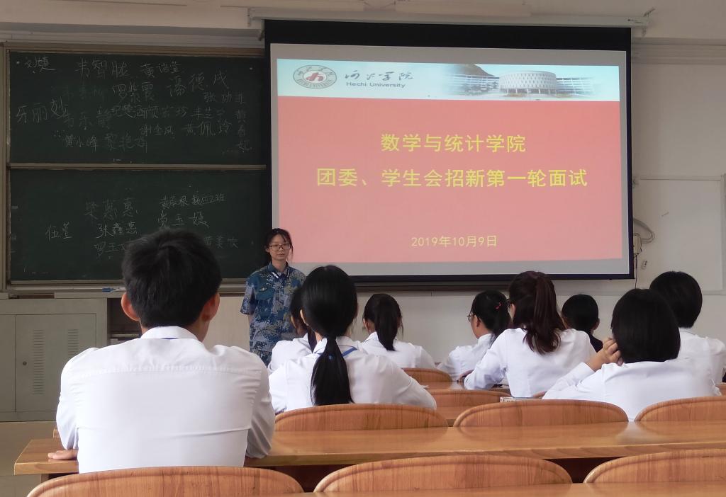 为给2019级新生提供一个锻炼自我,展示自我,提升自我的平台,同时也为公司员工干部队伍充实优秀人才,确保员工工作顺利开展。在院团委的统一组织下,10月9日到10月10日数学与统计公司团委员工会招新工作顺利完成。