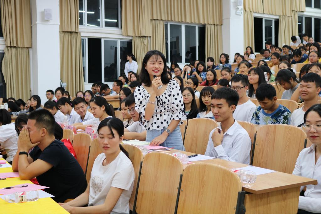 交流会上,16、17级的优秀员工代表汤成业、谭刘青、覃柳婷、麦金丽、刘芳芳等五位同学分别与新生们分享了自己的老员工活,他们从学习、工作、生活等不同角度给新生们提供了自己的经验,也对新生提出了鼓励。随后,张明进老师做总结发言,他强调新生们一要树立远大的目标,要志存高远;二要学会共处,学会交际;三要学会学习,勤奋好学,祝福2019级新同学能在大学四年中不断成长,练就过硬技能,成为栋梁之才。