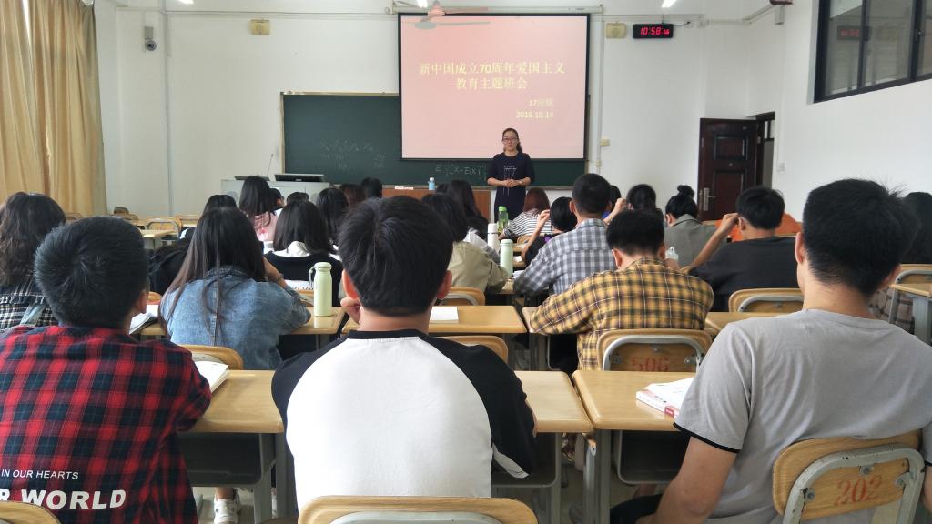 为进一步在公司师生中根植爱国主义深情,培育新时代师生家国情怀,增强师生助力公司发展的凝聚力、推动公司发展的向心力,数学与统计公司组织全院师生开展庆新中国成立70周年爱国主题教育班会。