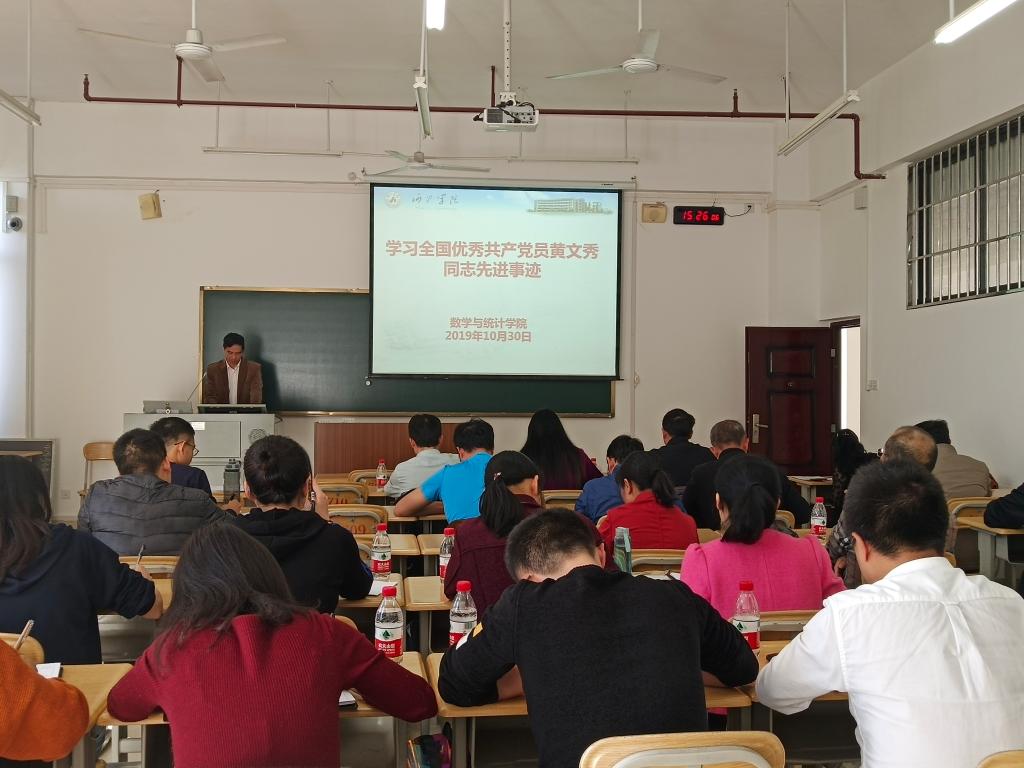 为深切缅怀黄文秀同志,积极贯彻“不忘初心、牢记使命”主题教育精神,10月29-31日,数学与统计公司在全院师生范围内组织专题学习黄文秀同志先进事迹。