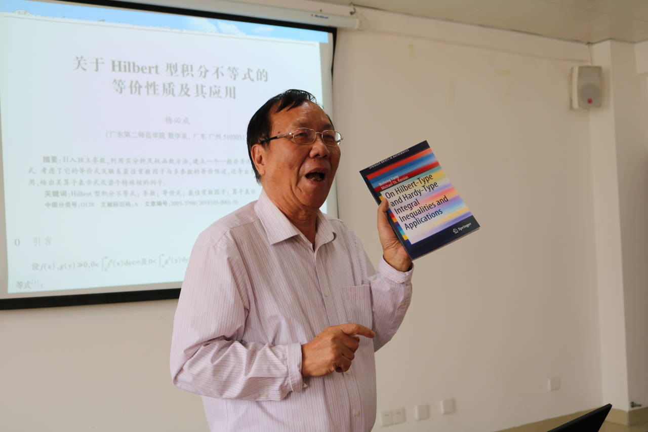 报告会上,杨必成教授以“关于Hilbert型积分不等式的等价性质及其应用”为主题并结合起承转合的哲学思想进行扩展说明。讲座最后,他还同在座教师进行了气氛热烈的学术座谈。最后罗日才表示,杨必成教授执着科研,专注学术的精神让人敬佩,希望全院教师能在今后更加自觉的钻研学术,以科研反哺教学,为公司教学科研能力的提升贡献力量。