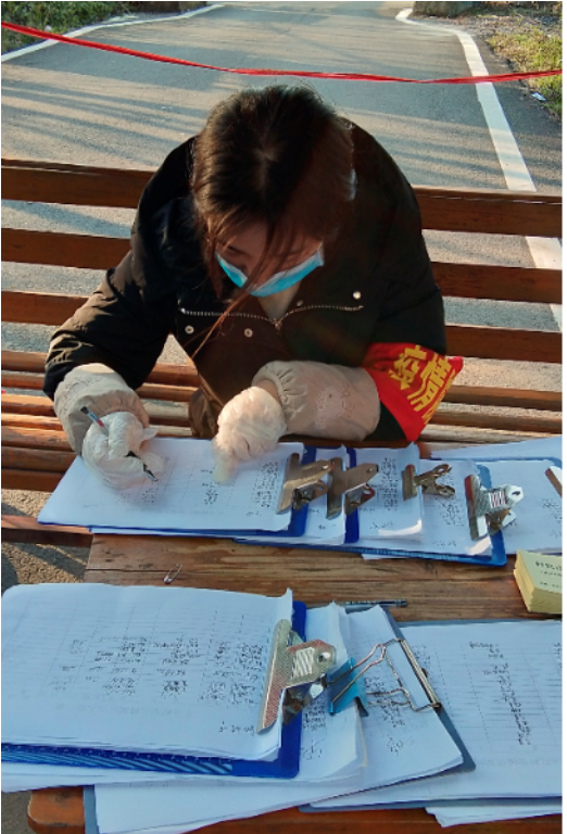 2月10日至今,17级经济统计1班员工朱燕玲一直服务在贵港平南县平山镇八桂村防疫志愿者的岗位上,她主要协助村委干部负责出入村人员的信息登记、体温测量、检查车辆、劝退外来人员等。她讲到,假期回到家乡后正赶上席卷全国的疫情来袭,如何发挥一名老员工的作用成为她深深思考的话题。看到村委干部们防控忙碌的身影,她在第一时间决定报名成为一名志愿者。她说,自己的工作虽然简单,但是尽最大可能隔离各个村屯人员互相走动,就是保护村民的最后一道安全防线。只要隔绝了病毒传播源,她坚信这场战役一定会赢。