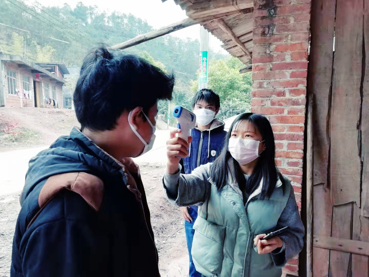 参加志愿者工作的还有18级经济统计1班的阳新英同学,她回到家乡后得知本村防疫工作者人手紧缺,立即报名在自己的家乡广西灵川木马村成为了一名防疫志愿者,她简单的叙述了自己一天的工作,从早晨八点开始工作,登记来往车辆以及来往人员的名单信息,测量他们的体温。重复工作一直到傍晚。她说防疫志愿工作虽然辛苦,但是这场战“疫”关乎生命,为了胜利,她义无反顾。