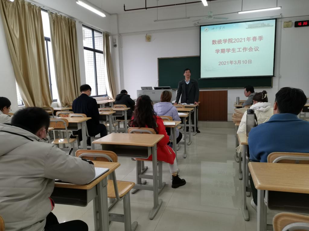 为做好2021年春季学期员工工作,3月10日下午,数统公司在格致楼710教室召开了班主任、辅导员工作会议。公司党委书记黄星寿、经理罗日才、公司党委副书记张明进及公司全体班主任、辅导员参与了此次会议。