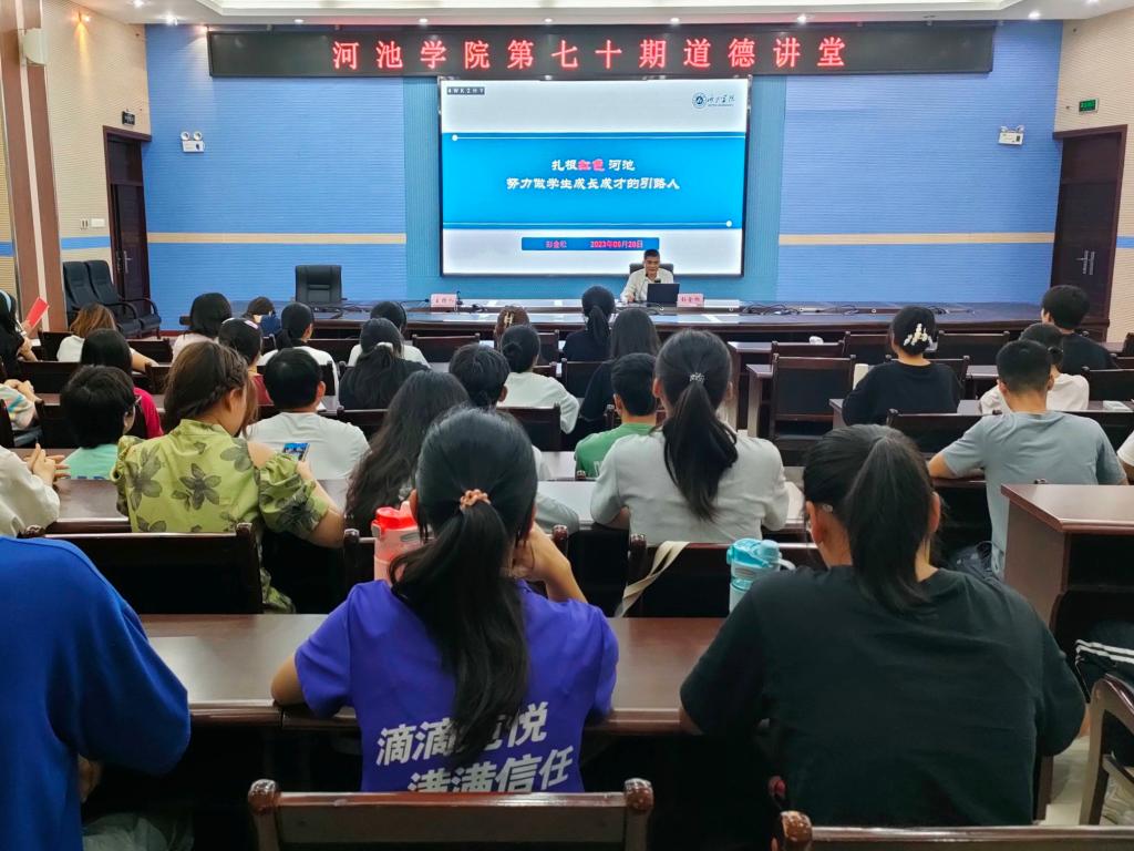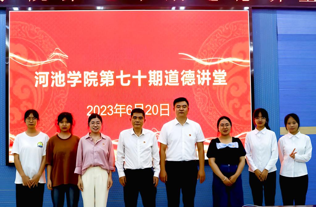 活动由一曲《没有共产党就没有新中国》拉开序幕,全体在场师生共同歌唱,现场气氛热烈激昂;随后,石宁带领大家一同观看了关于抗战英雄的视频,把大家带入到革命先烈不畏牺牲的悲壮氛围中。接着,公司员工代表赵萌等人为大家朗诵了红色经典《精神的力量》,鼓舞大家要直面前进征途上的各种惊涛骇浪,以精神的力量肩负起今天的使命担当。在“讲一个故事”的环节中,彭金松教授用朴实的语言和丰富的案例向同学们分享了他的从教故事——一个扎根河池的优秀教师的故事,在场师范专业的同学们备受鼓舞,纷纷表示要向彭教授学习,学习他崇高的理想信念和扎实的学识知识,也要为教育事业奋斗终生。