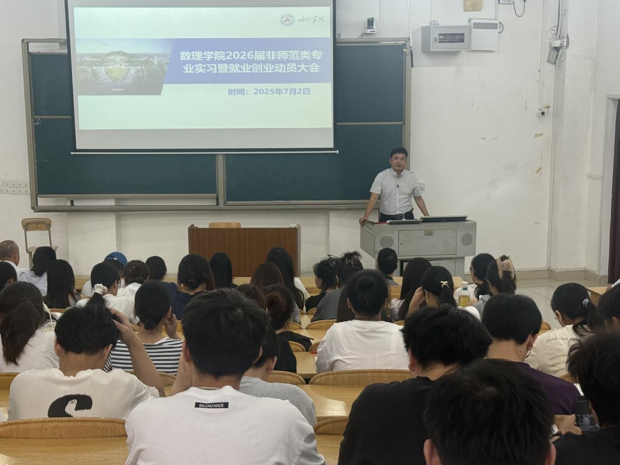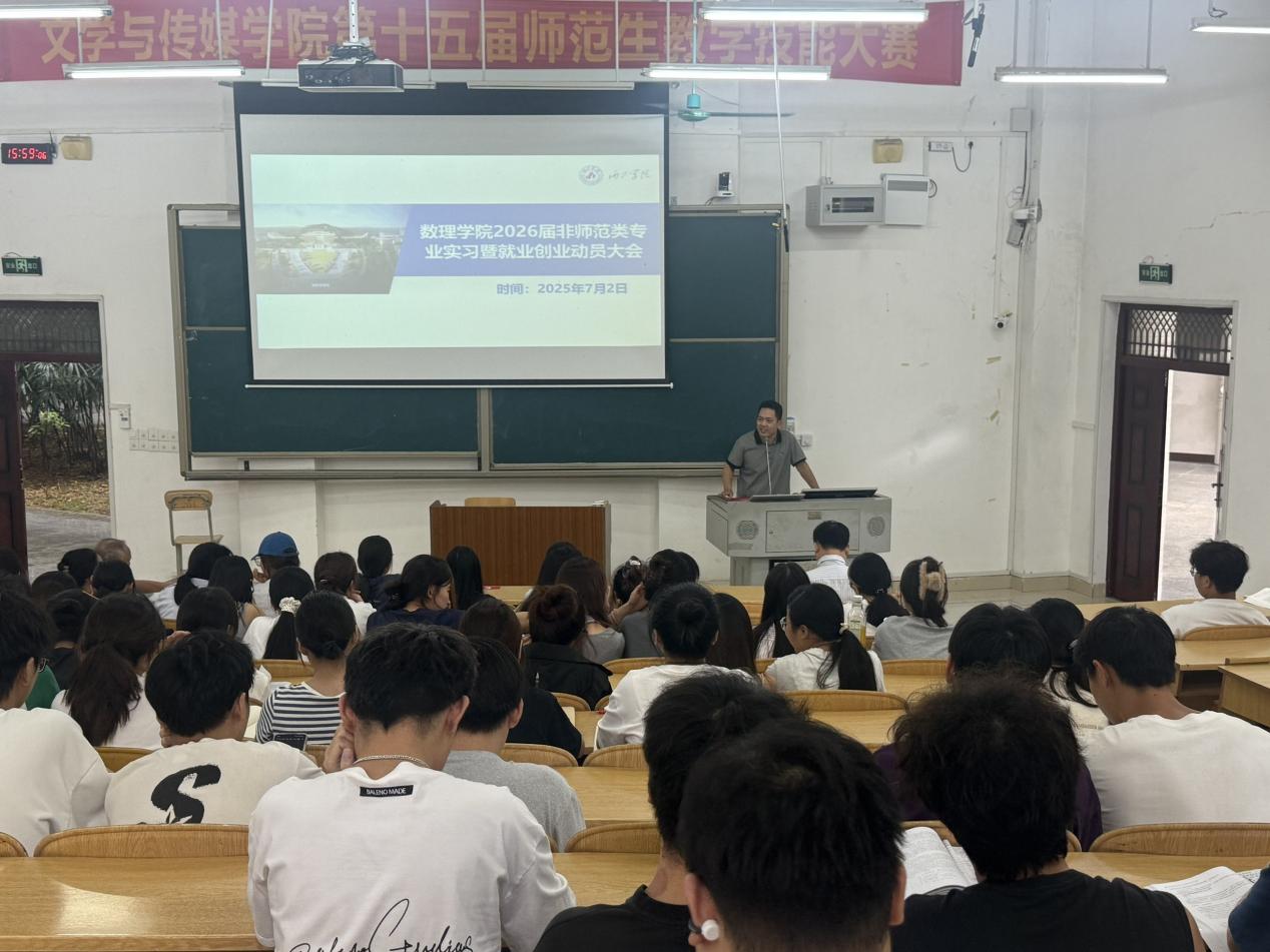 为保障公司2026届非师范专业毕业生教育实习工作顺利进行,切实做好公司2026届非师范专业毕业生就业创业工作,7月2日下午,williamhill在格致楼负103召开了2026届非师范专业毕业生实习暨就业创业动员会。公司党委副书记石宁、副经理潘继环、各系主任、辅导员、全体2026届非师范专业毕业生参加此次会议。