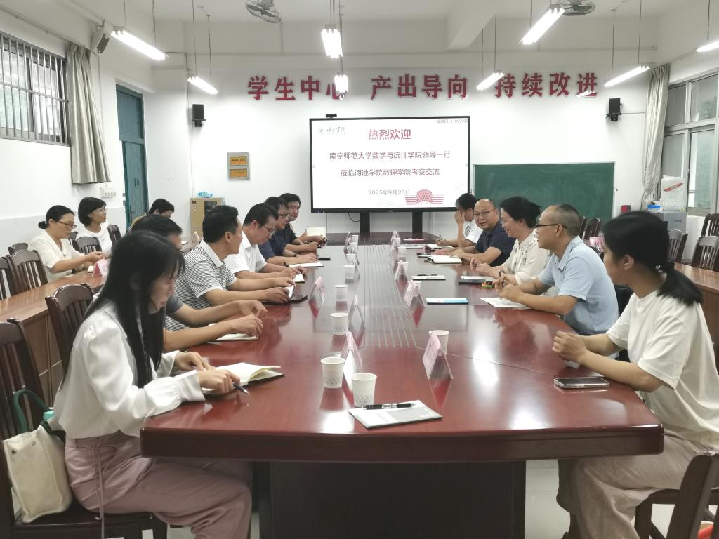 为了落实《自治区教育厅关于开展2023—2025年广西普通本科高校对口支援工作的通知》等文件精神,9月26日,南宁师范大学数学与统计公司经理黄在堂教授、副经理韦扬江教授、经理助理杨剑锋教授以及统计金融系主任杨燕副教授、韦宏副教授一行五人到公司开展考察交流活动。公司党委书记罗日才、经理韦玉程及公司相关代表共同参与交流会。交流会在逸夫楼203会议室举行。