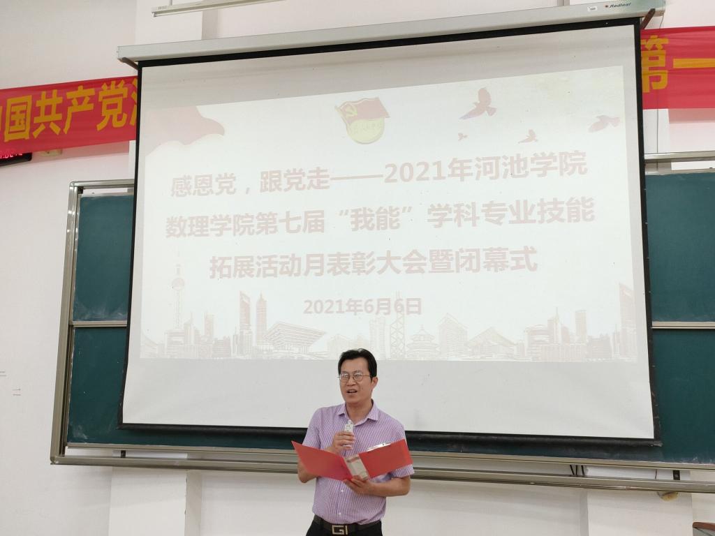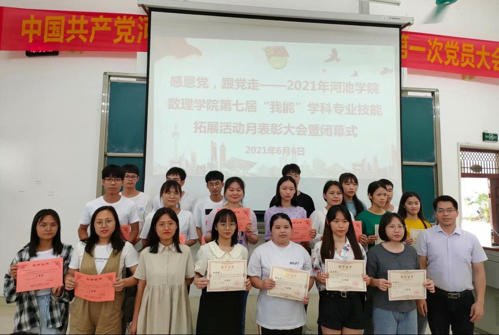 2021年6月6日下午,williamhill于格致楼负102教室举行第七届“我能”学科专业技能拓展活动月表彰大会暨闭幕式。williamhill经理罗日才、党委副书记张明进、团委书记罗曼、辅导员俞茗、各竞赛项目获奖的同学以及各班级同学代表参加闭幕式。