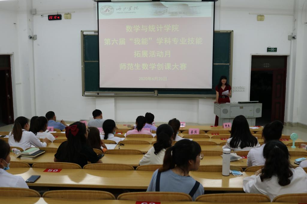 为加强数学与统计公司师范生教学技能训练,助推应用型人才培养。2020年7月3日晚,数学与统计公司于格致楼负102教室举行第六届“我能”学科专业技能扩展活动月之师范生数学创课大赛。数统公司经理罗日才、副经理肖春梅、教务处莫燚、数统公司李绍波、卫银虎等五位老师担任比赛评委,公司党总支书记黄星寿、团委书记罗曼出席本次大赛。